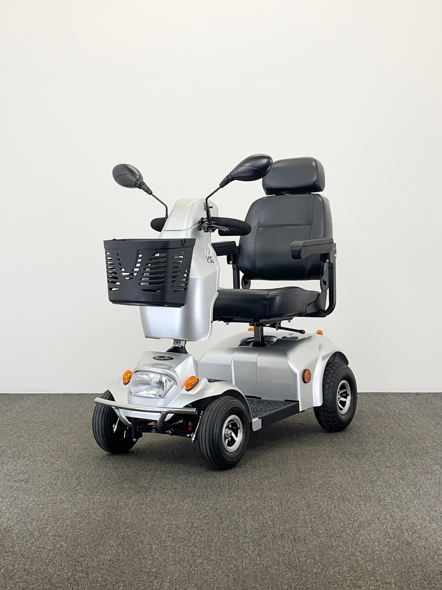The Freerider Mayfair 8 Deluxe Mobility Scooter is a compact 8mph machine for use on pavements, town centres and light rough terrain use.