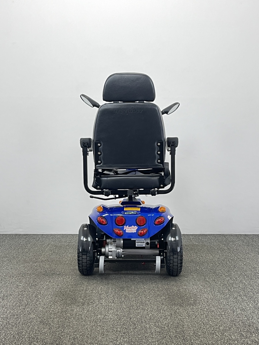 The Freerider Mayfair Evolution is a mid-sized mobility scooter that is great for pavement travel. It will get you to and from your local shops with ease.