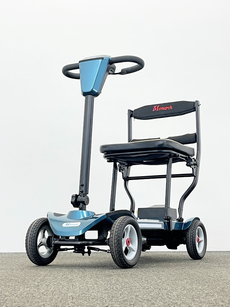 The Monarch Air Plus is a lightweight mobility scooter that manual folds.