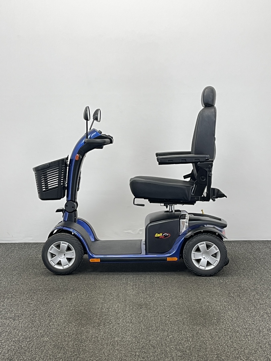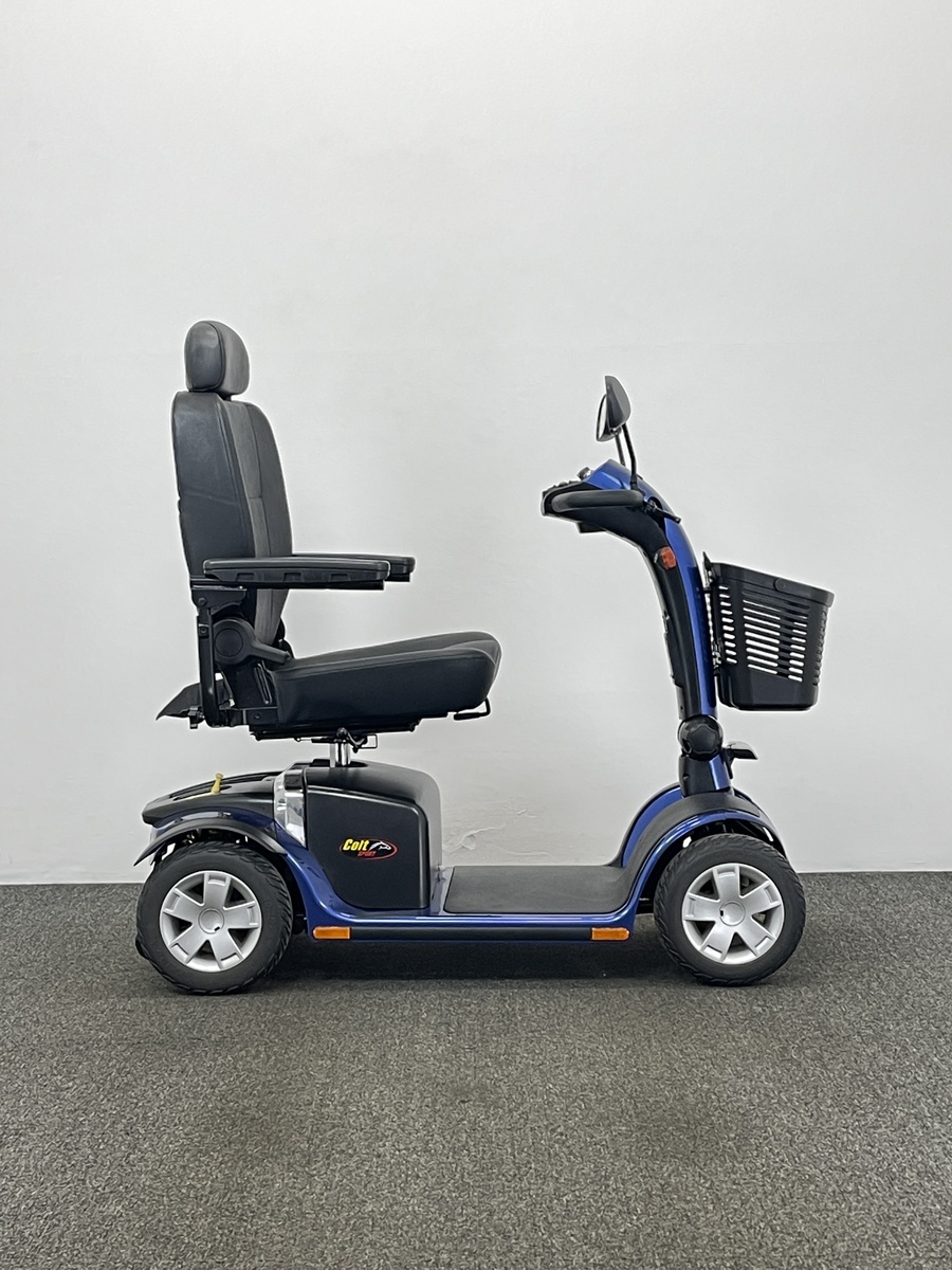 The Pride Colt Sport is a rare find. It is an 8mph mobility scooter that you can drive on the roads that is compact and transportable.