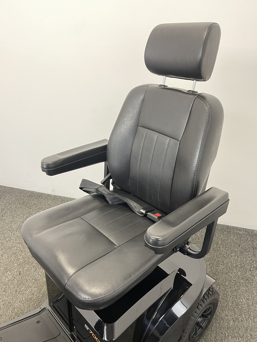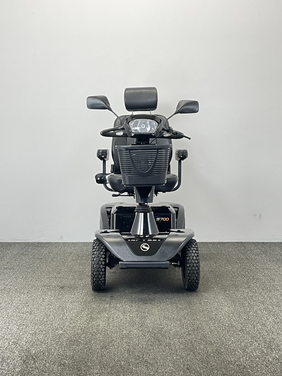 The Sterling S700 Mobility Scooter is equipped with front and rear suspension and travels at top speeds of up to 8mph giving it the ability to tackle bumpy pavements, gravel paths, grass and roads.