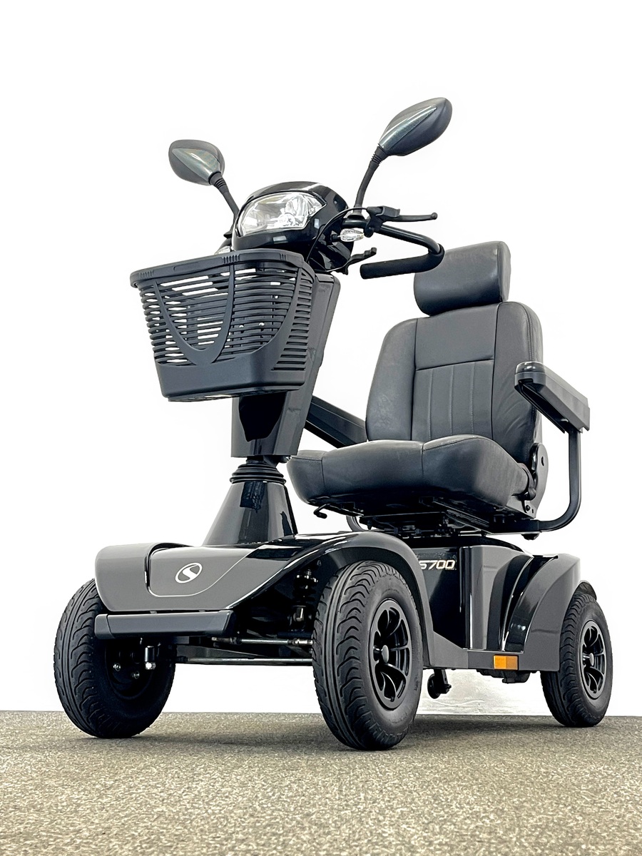 The Sterling S700 Mobility Scooter is equipped with front and rear suspension and travels at top speeds of up to 8mph giving it the ability to tackle bumpy pavements, gravel paths, grass and roads.