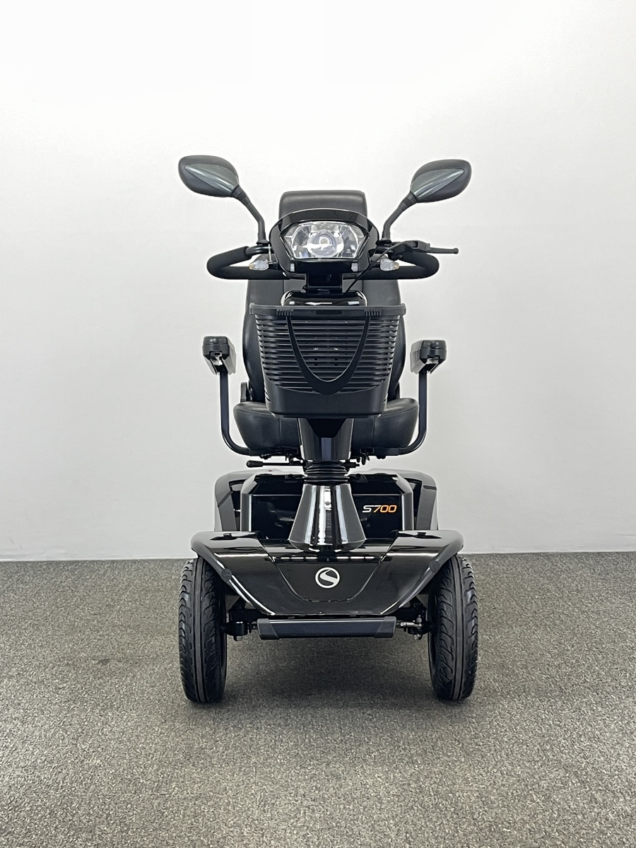 The Sterling S700 Mobility Scooter is equipped with front and rear suspension and travels at top speeds of up to 8mph giving it the ability to tackle bumpy pavements, gravel paths, grass and roads.