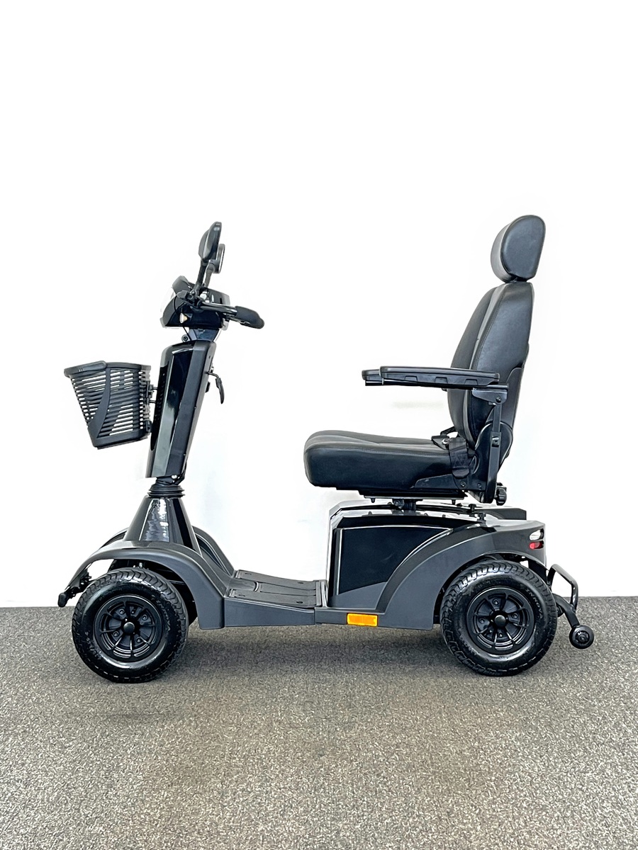 The Sterling S700 Mobility Scooter is equipped with front and rear suspension and travels at top speeds of up to 8mph giving it the ability to tackle bumpy pavements, gravel paths, grass and roads.